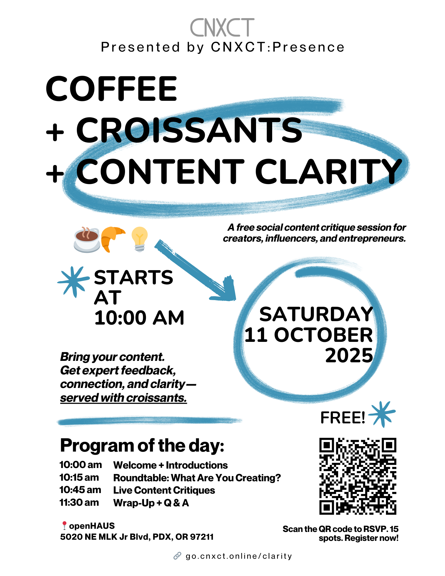 Save your spot for Coffee + Croissants + Content Clarity on Oct. 11th @ openHAUS in Portland, OR.